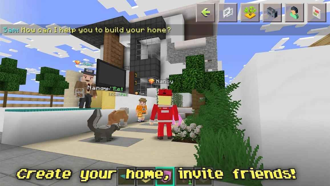 In the android pixel game designed in Minecraft style, you can adjust the interior and exterior design as you wish by constructing buildings and villas with various blocks. You can also explore your region with FPS support and making friends.