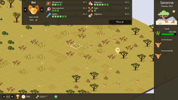 It is a single player 2D strategy PC game. In the game, you will progress towards the desired goals and mutate as you progress. You will try to keep the animals alive and meet their basic needs such as food. At the same time, increase the breeding population and prevent diseases that will occur.